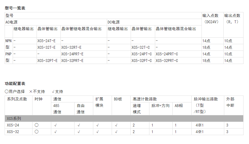 主機28入/20出,2點晶體管輸出其余繼電器輸出,DC24V供電,帶CAN總線,3路AB相計數(shù),2路高速脈沖