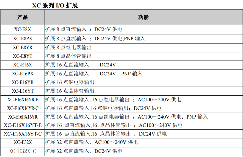 擴(kuò)展8點(diǎn)晶體管輸出580XC-E16X擴(kuò)展16點(diǎn)直流輸入;DC24V