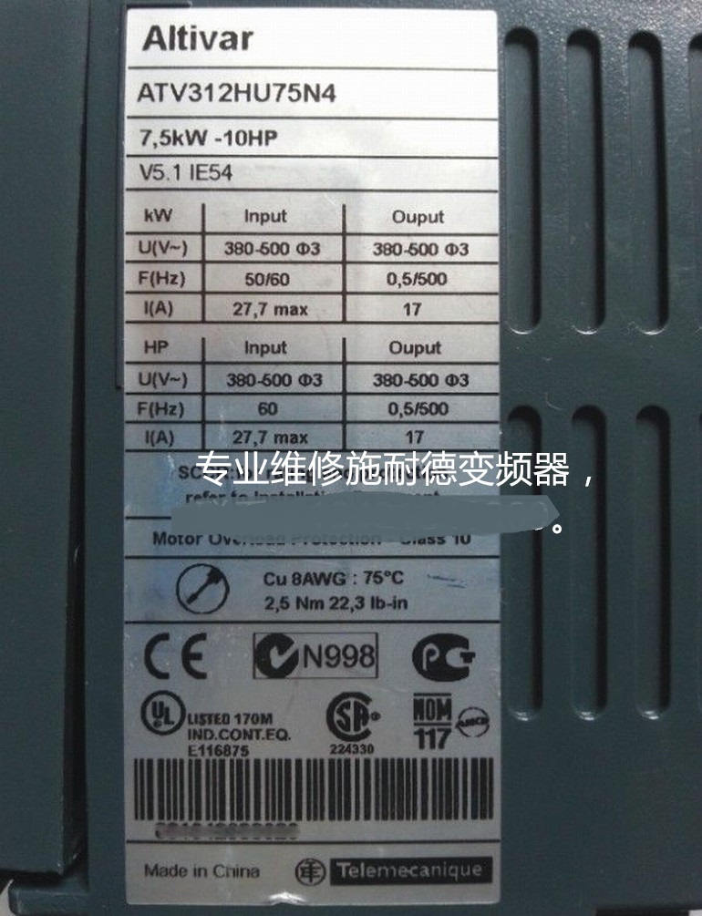 施耐德變頻器輸入側(cè)缺相故障維修 施耐德ATV31H075M2A變頻器維修